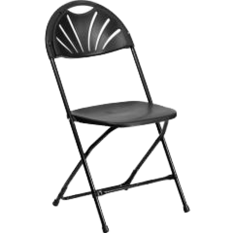Black folding chairs that look great and are extremely comfortable, making it an ideal choice for your party.